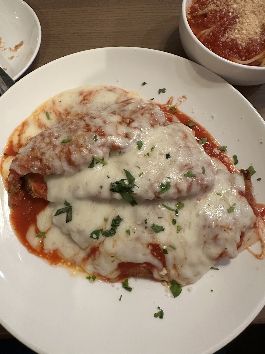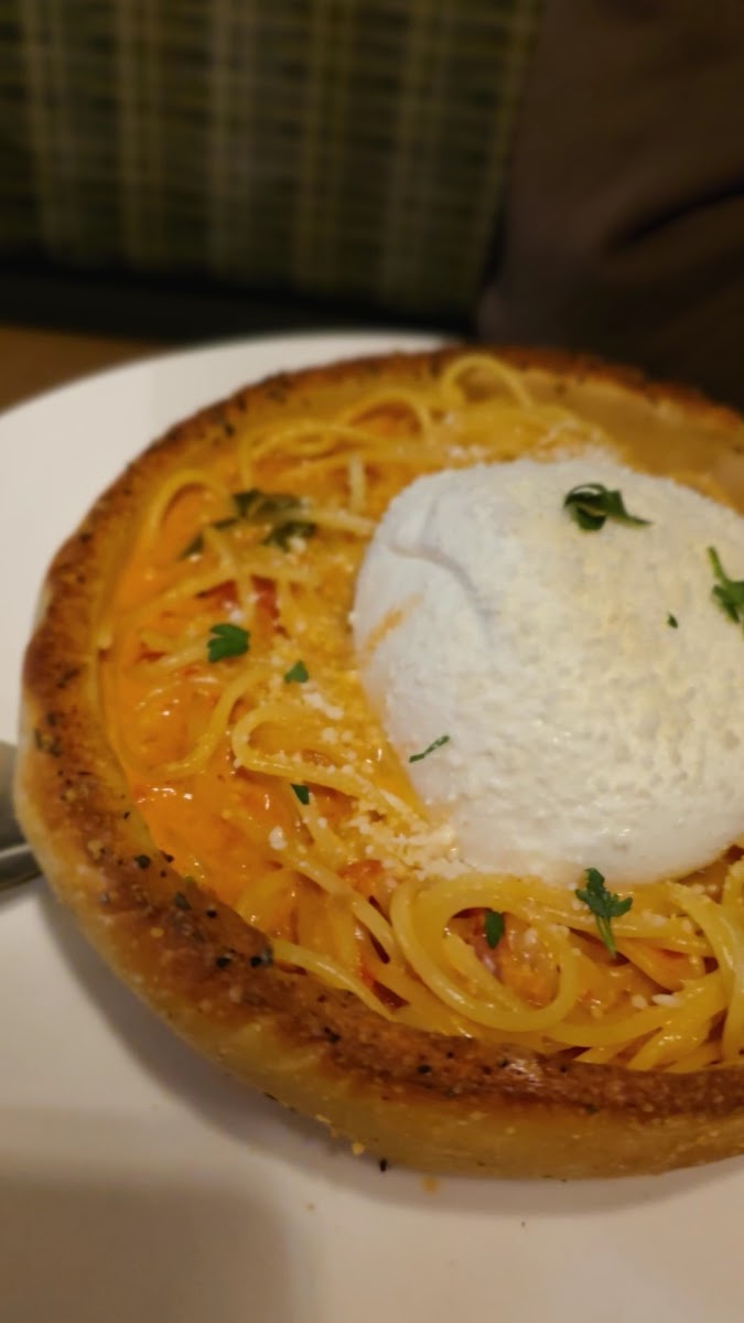 First time there. The food is amazing. My husband and I ordered the Clams Oreganato and Fried Mozzerella. They were both great. Says it comes with marinara but ours was with vodka sauce. So good. Then he ordered the Short Rib Rigatoni in a bread bowl with melted mozzarella on top. That was amazing. The rib meat is so tender. So good. I ordered the Chicken franchise with spaghetti bread bowl. Again so delicious. Will definently be going back.