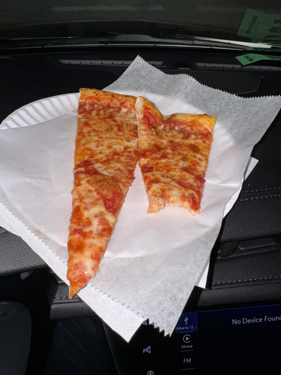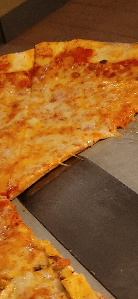 Dropped in for a quick slice of pizza, then noticed they have vegetable stick- like a mini roll, very good. So comfortable, nice relaxing music, busy crowded but not loud. Staff was very friendly and great service. Reasonable price for meal, parking lot in front. Cute birthday for patron, with happy birthday song on speakers and sparkler at table, nice occasion touch.